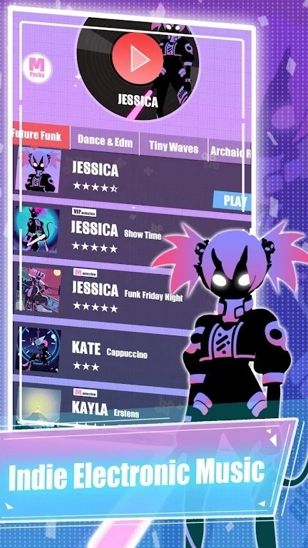 2、缪斯计划》的音乐充满强烈的电子感,节奏明快有力,每次按键都能给玩家带来非常清晰的反馈,让人仿佛真的置身于钢琴演奏的情境之中。目前游戏仅提供Phyllis和Eva两首曲目供选择,且由于采用无尽模式设计,暂时没有不同难度等级可供切换,这对于刚接触的新手而言,上手门槛会相对较高。两首曲子在风格上的区分度不算明显,但随着游戏进程推进,曲目的音色、节奏以及和弦等元素都会逐渐发生变化。