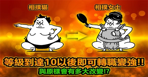 超轻松养成系统:完成关卡就能获取经验值~把你的猫咪角色等级提升到10级后,就可以进行转职啦!!