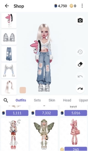 2、点击【shop】按钮,就能看到不少搭配好的精美服装,这些服装各自有着不同的定价。