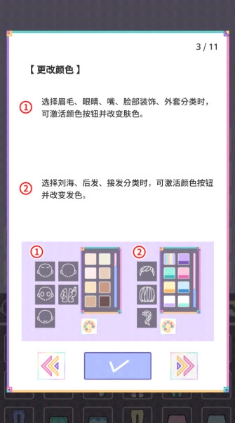 当选择刘海、后发或进行分类操作时,颜色按钮会被激活,发色也可随之改变。