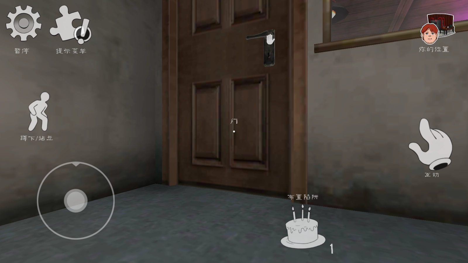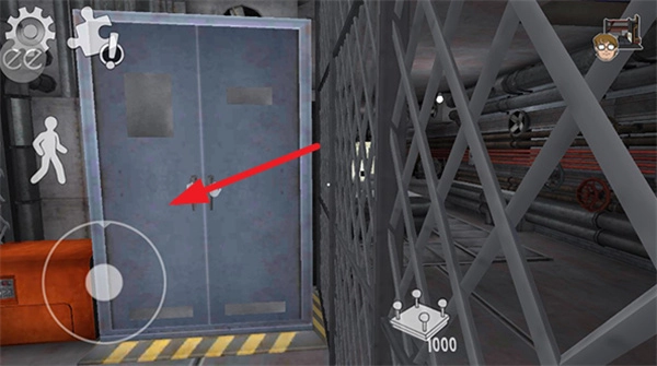 5、左下角的虚拟摇杆可操控角色移动,靠近大门后,点击右侧中间的按键即可将其打开,同时也能去收集相应的道具。