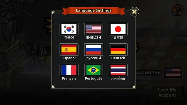2、进入游戏首页,右边language玩家可以通过它调节系统语言。