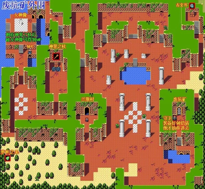 东北方的宝箱里藏着[いにしえのせきばん古代版画],等角色达到3级,就能去中部解决那两个石像怪,拿到[しんかいのつえ神界之杖]。之后前往西北方的女神像所在处,就能获得MP了。
