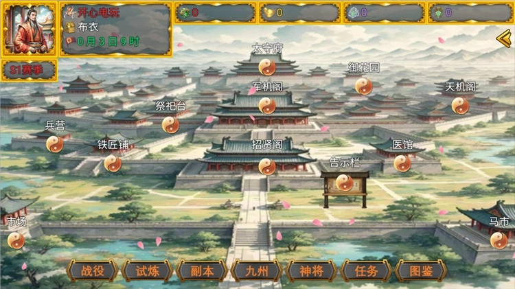 3、在经典怀旧的画风基础上,融入抓将、洗练、强化、镶嵌、九州争霸、副本挑战等多样化玩法,为玩家打造一段内容充实的沉浸式三国征战体验。