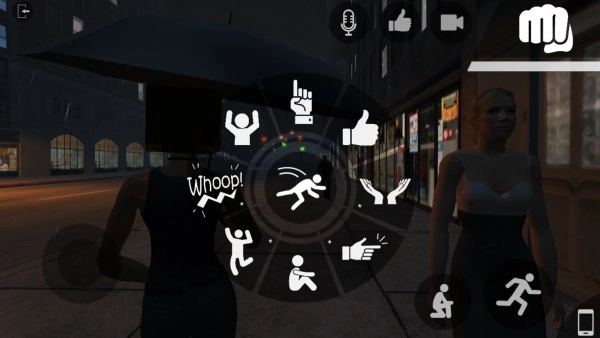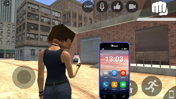 进入游戏后,你可以先点击【chat】按钮开启对话功能。操作方面,左边的圆圈按钮用于控制角色前进或后退,右边的按钮则对应蹲下和跳跃动作。