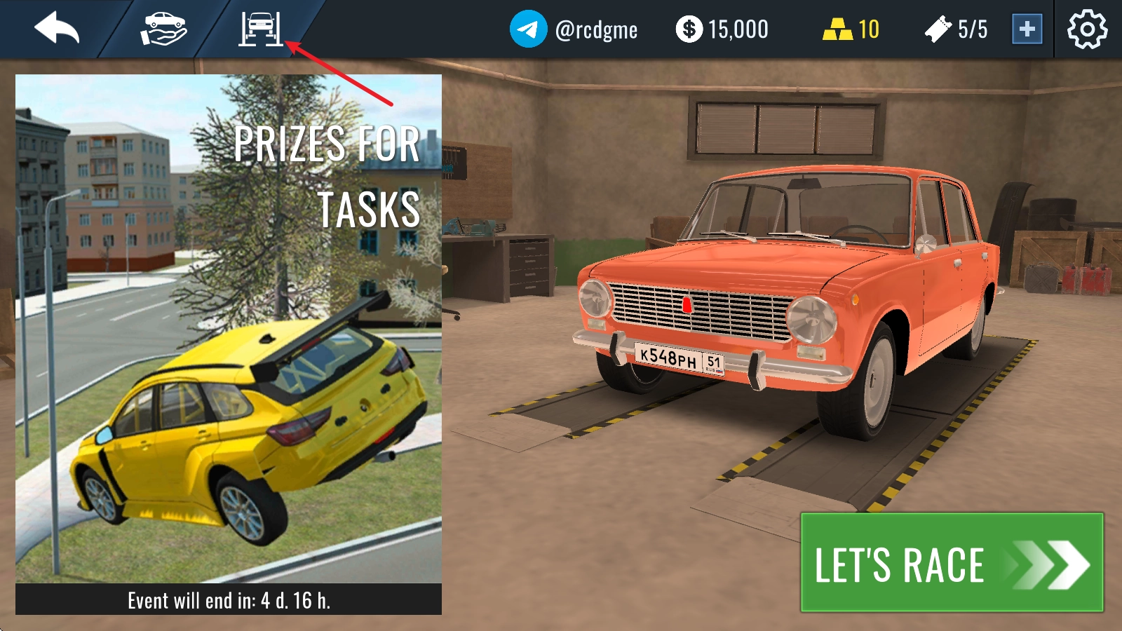 点击左上角的车库按钮。