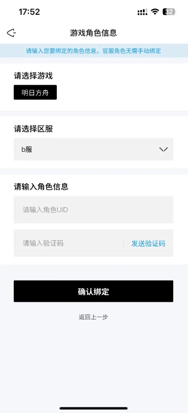 选择B服,接着输入角色的UID和验证码,最后确认绑定就完成了。