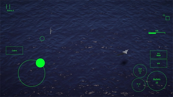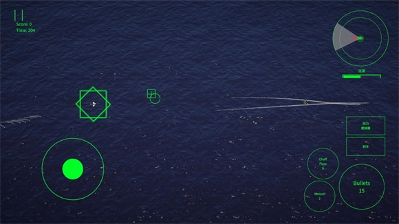屏幕上的绿色圆圈是机枪的瞄准标识,若敌方目标被绿色方框框住,则意味着已被导弹锁定,此时可发射导弹展开攻击。