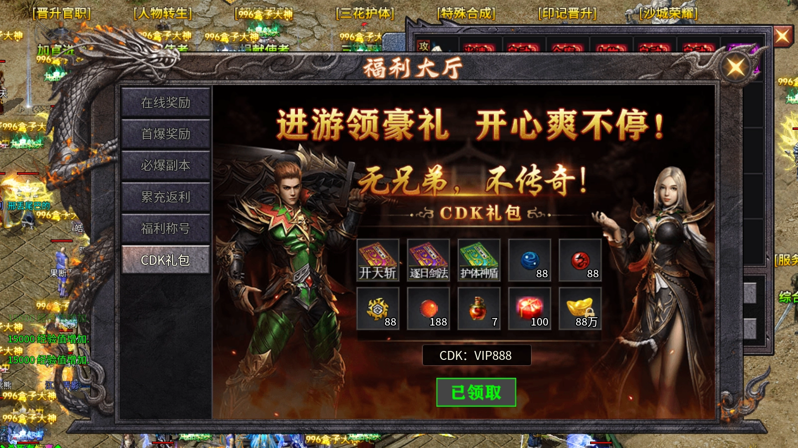 兑换方法:点击游戏界面上方的福利大厅,找到并点击CDK礼包选项,输入对应的礼包码就能完成兑换啦。