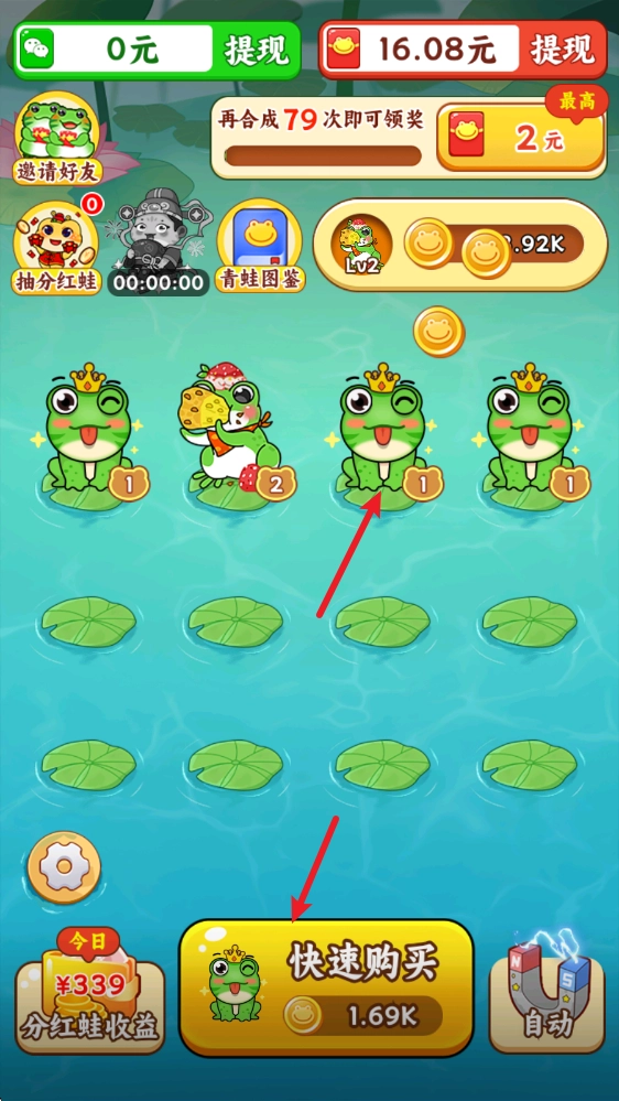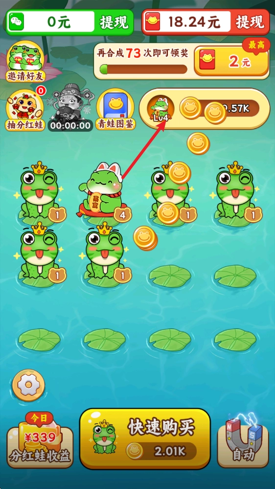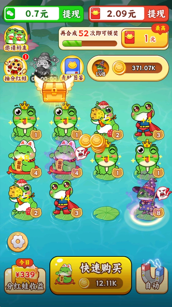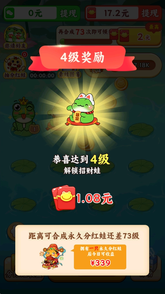 首次合成出新等级的青蛙时,可以获得一份奖励。