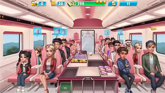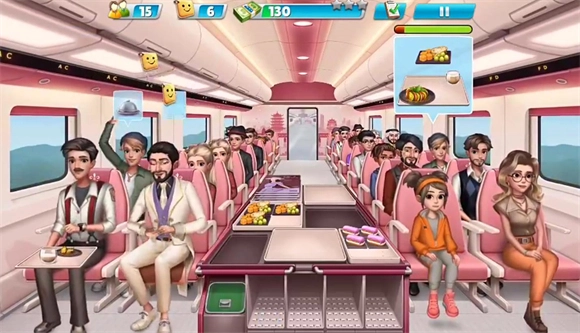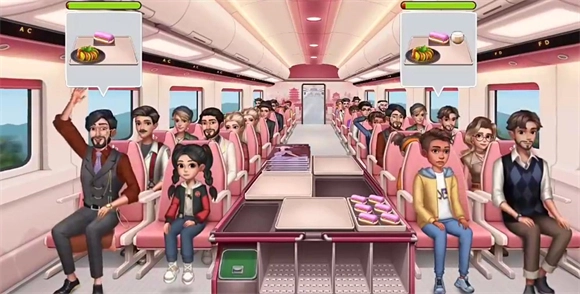 点击右侧的箭头就能前往车厢为顾客提供美食,顾客所需的美食会在头顶的气泡上显示出来。