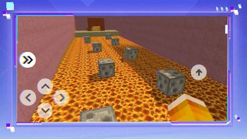 你可以通过操控左侧的【←】【→】【↑】【↓】按键来控制角色移动,过程中要注意避开岩浆区域,同时可以借助木箱作为障碍,再配合跳跃键来跨越各种危险。
