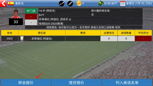 1、选择上方被物色的球员