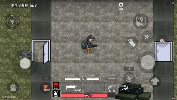 进入游戏后会有一段新手教程,左侧用于操控角色移动,右侧则负责角色的开火操作。