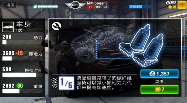 阶段1:装配轻量化碳纤维座椅,可在牺牲部分抓地力的前提下提升加速度。