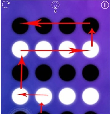先从左侧的按钮着手,顺着箭头所指的方向进行连接,之后再把剩下的黑色按钮连接起来就可以了。