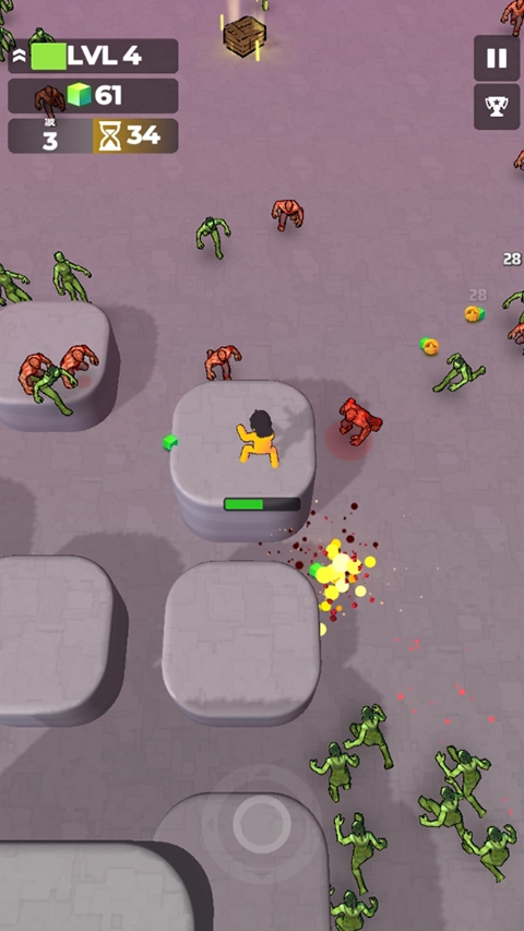 跳一跳大冒险是一款极具爽快感的经典Roguelike割草射击手游,支持中文语言切换,助力玩家轻松理解游戏内容。在游戏里,玩家将化身勇敢的小黄人,戴着酷炫墨镜,手持威力强劲的双枪,在蜂拥而至的尸潮中灵活穿梭,把僵尸一个个消灭。游戏融入的Roguelike元素,让玩家每次冒险遇到的敌人和获得的武器都不一样,这种高随机性的设定,对玩家的Build搭配和长期规划能力有一定考验。不过只要玩家策略得当,再加上强力武器的助力,任何僵尸都不在话下,玩家能惬意地在尸潮里“割草”,尽情享受射击的乐趣。喜爱割草类游戏的玩家可别错过,快来开启跳一跳大冒险吧!