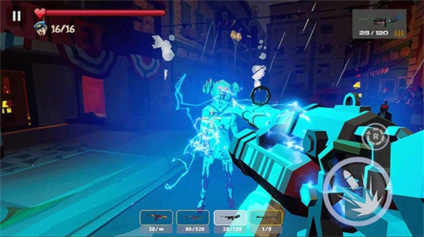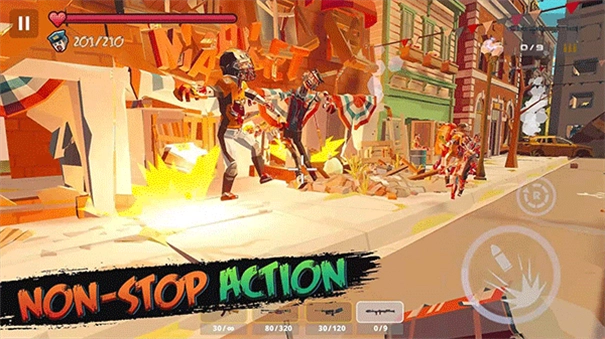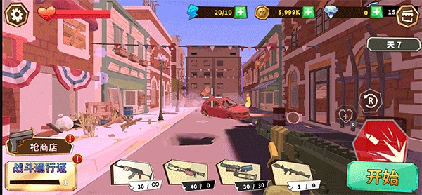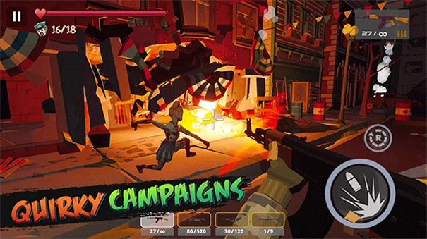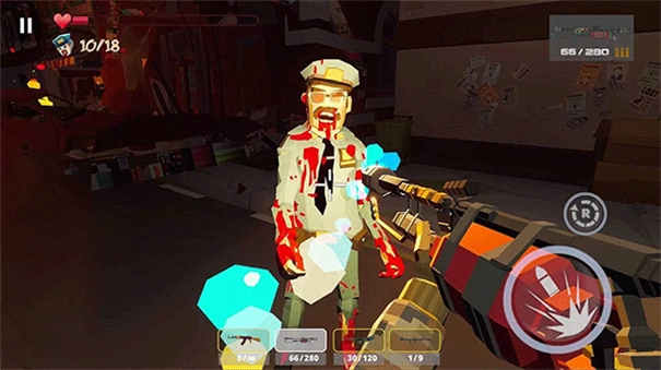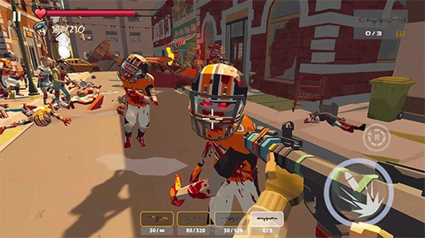 尽管采用低模卡通风格,游戏却运用FPS视角,使玩家能更直观地直面僵尸来袭的场景,再搭配血量条、精准瞄准等设计,进一步增强了真实感与压迫感。