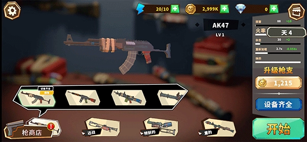 点击枪商店,在这里既能购买各类枪械,还能对枪械进行升级。