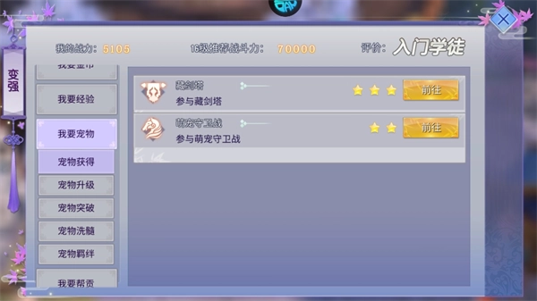 宠物能够通过宠物自身、宠物商城、藏剑塔和萌宠守卫等途径获取,得到宠物之后,可以借助升级、突破、洗髓、羁绊这些方式来提高宠物的战力。