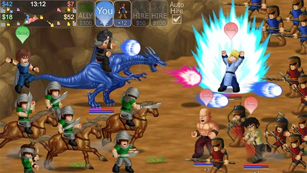 战争:在战场上赚钱招兵、攻城夺营,与百人大战。