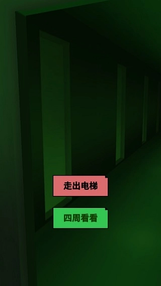 后续的操作流程也是这样,当玩家抵达B2层时,电梯门会自动打开,这时你可以选择“走出电梯”或者“查看四周”。