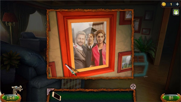 利用圆珠笔打开右边的相框得到保险箱;