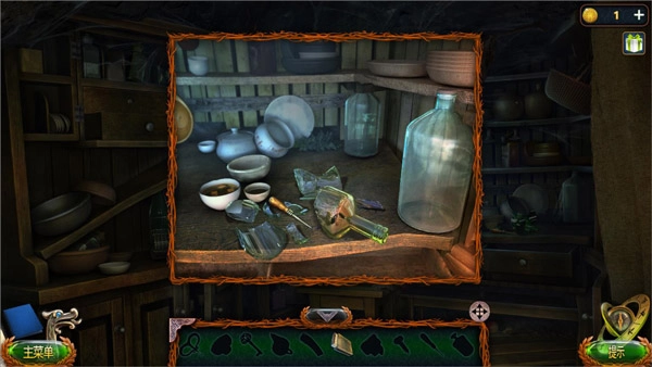 进入里面后,点击1处,砸碎瓶子就能获得凿子,与此同时,点击左侧可以拿到火柴盒。