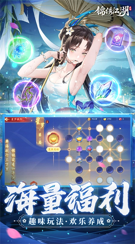 《锦绣江湖》是一款融合了卡牌、放置、RPG与挂机玩法的优质游戏,它采用了极为完善的诗意国风设计——无论是人物立绘还是场景塑造,都充分展现了中华传统文化的韵味。游戏以写实的方式还原了武侠江湖的世界,以千奇百怪的人形兵器和江湖百家纷争构建世界观,数百位高颜值侠客将逐一登场,邀你共赴这场充满诗意的江湖之旅。