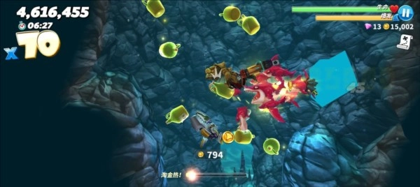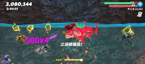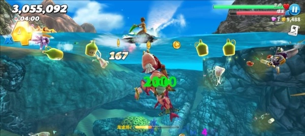 PS:建议利用国际服三十天签到(可通过调整日期快速获取)赠送的狂暴鲨群来刷钱,不然最右侧的洞穴会无法进入,而且攒下的钱尽量不要随意花费,钻石要优先购买火箭包,金币则优先攒起来解锁高阶鲨鱼,或者利用国服商店的bug刷珍珠。