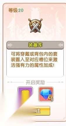 角色等级达到20级后可解锁装备库功能,该功能内的库位数量会随着角色等级的提升逐步开放使用。