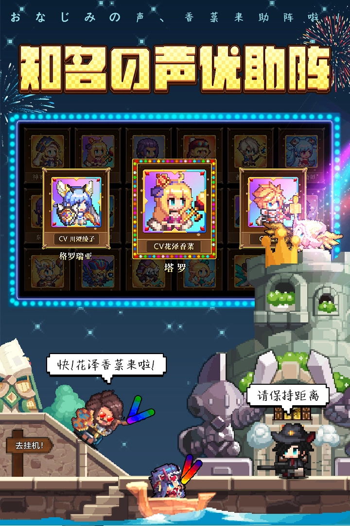 这款游戏的玩法设计很有特色,核心就是持续参与战斗,再搭配人物养成系统。它最特别的地方在于像素画风与高清画面的融合:战斗场景保留了像素玩法的复古质感,人物建模和主界面却清晰细腻,这种反差感十分独特。