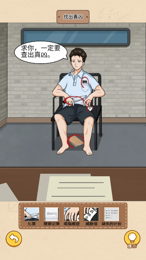 审问老公时,需要点击匕首、地上的计划本,以及带有威胁性的物品和他口袋里的手机。