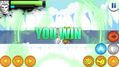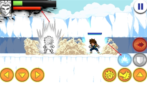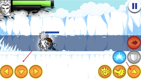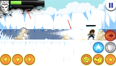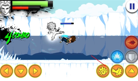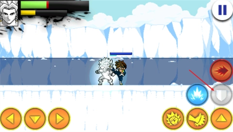 4、战斗启动后,左边的方向键用来操控移动,右侧的上键负责实现跳跃。