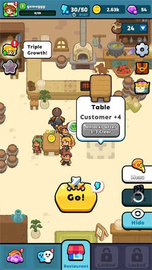 3、餐厅大亨玩法:用战斗中获取的食材烹饪美味佳肴,为饥肠辘辘的顾客提供餐饮服务。不断扩张你的餐厅规模,力求实现利润的最大化!
