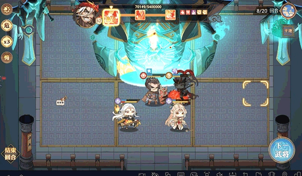 战斗开始时,他就释放了一次覆盖全队的范围攻击,瞬间让所有人的血量都大幅下降。紧接着,BOSS进入了持续四回合的固定行动模式——这个模式下,他的攻击只对不在自己正下方格子的目标有效。要是我方队员能精准地全部站在BOSS正下方的格子里,就能彻底躲开这期间的所有伤害。