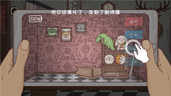 5. 注意到原本憨态可掬的玩具熊已经“黑化”,这时要果断点击剧场屋,探寻里面隐藏的秘密。
