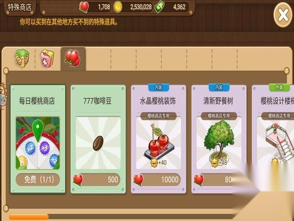 特殊商店里的樱桃商店,每日有一次免费抽奖机会,能额外获取一份咖啡豆购买倍率;要是抽中5倍兑换率,那可就是欧皇附体啦。