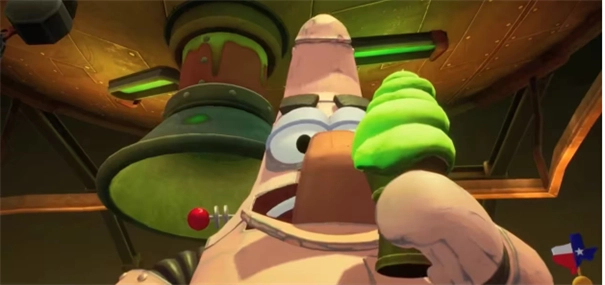 打败机械海绵宝宝之后,痞老板和海绵宝宝会进入大机械海绵宝宝的机械脑子里进行最后的决战,在这里你要继续用泡泡炸弹拆除一切零件,组织机械痞老板毁灭裤头村。