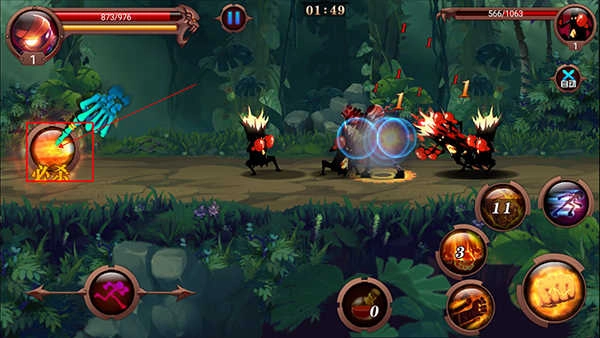 5、围绕着攻击键的是各种各样的技能按钮,这些按钮在使用之后需要等待冷却时间。