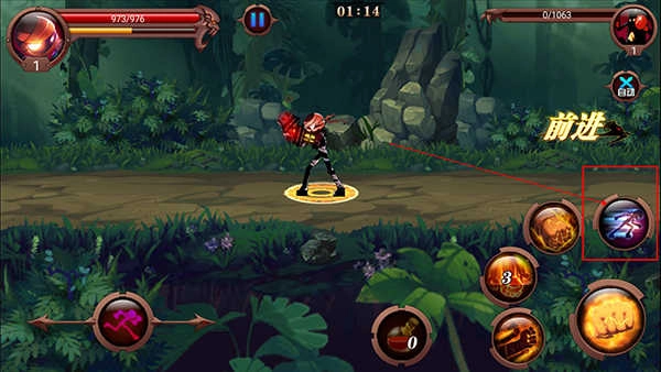 4、右下方圆形按钮是普通攻击键,可以无限次使用;