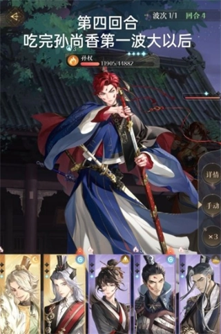 3、第四到第五回合时,要在孙尚香第二次放大招之前集中火力把孙权击杀掉,这样可以降低一次团灭的风险,这个时候战场上或许还剩下四个人。
