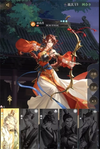 2、第三回合,让颜良释放大招来分担敌方造成的伤害,同时要确保他能存活下来,其他角色也尽量把技能都放出来。