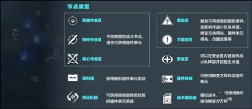 (4)探索阶段的区域内分布着各式各样的节点,每个节点都具备独特的作用,指挥官能够依据自己小队的实际作战状况,挑选出需要前往的节点。
