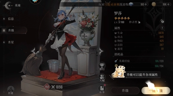 3、通过升级和升星强化你的角色战力。