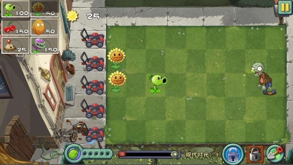 缺点:种植花费从100点提升至275点。演示关卡利用豌豆射手产生大量能量豆,再将能量豆喂给向日葵从而达成生产阳光的目标量。