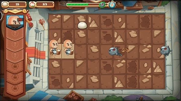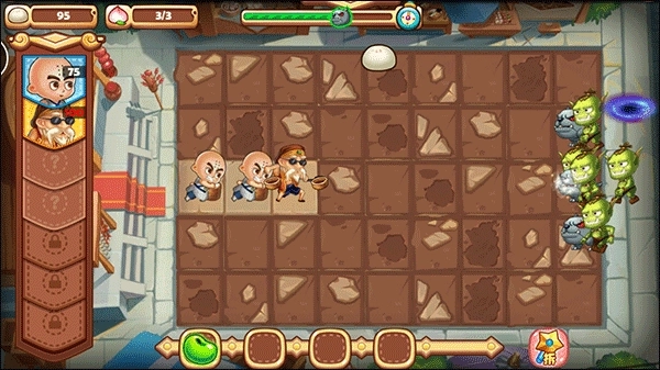 1、刚进入游戏时,我们需要收集掉落的包子来放置人物以击退饿魔;其中,包小龙是一个特别有用的角色,他不仅可以自己生产包子,还能有效地抵御饿魔的攻击;