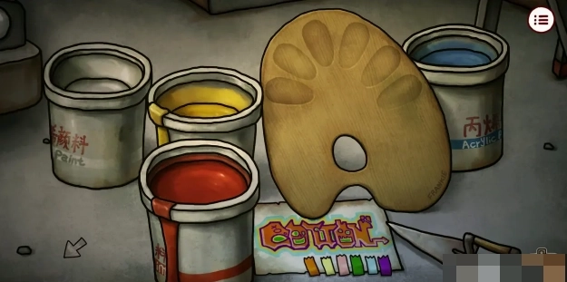 6、到东城二巷将油漆刷递与画家并帮他完成调色盘,具体合成步骤为:红+黄、白+黄、白+红、蓝+黄、白+蓝、红+蓝,完成后进入影剧院(你配对了他也会画错)