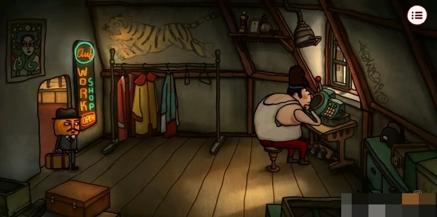 9、到理发店对音乐盒使用操作杆,然后观察纸条上的提示。接着到猪肉铺用剪刀剪断并拿走第四块「猪肉」,猪肉荣惊醒后将进货单交给他。