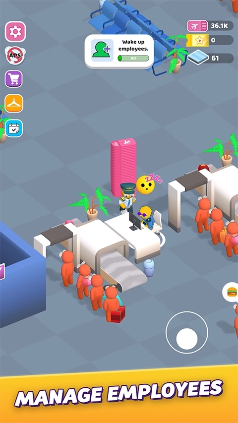 5、接待乘客获得奖励,建造机场设备,解锁更多的员工帮你搭理;